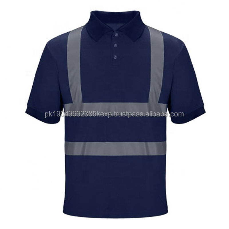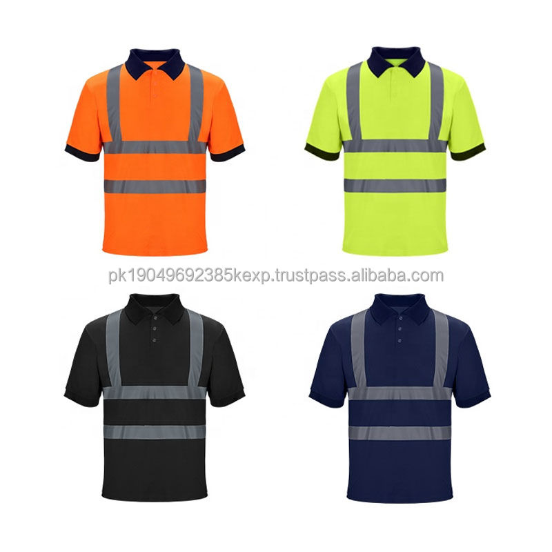Men's Custom Logo Hi Vis for Polo Shirt 100% Short Sleeve Reflective Safety Clothing Long Length Security Work T Shirts Solid