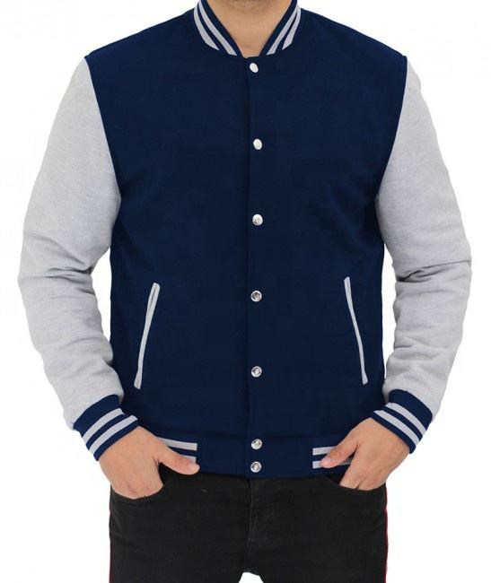 Men's Custom Logo Lettermen Jacket Wholesale Men's Baseball Style Grey and Blue Jacket
