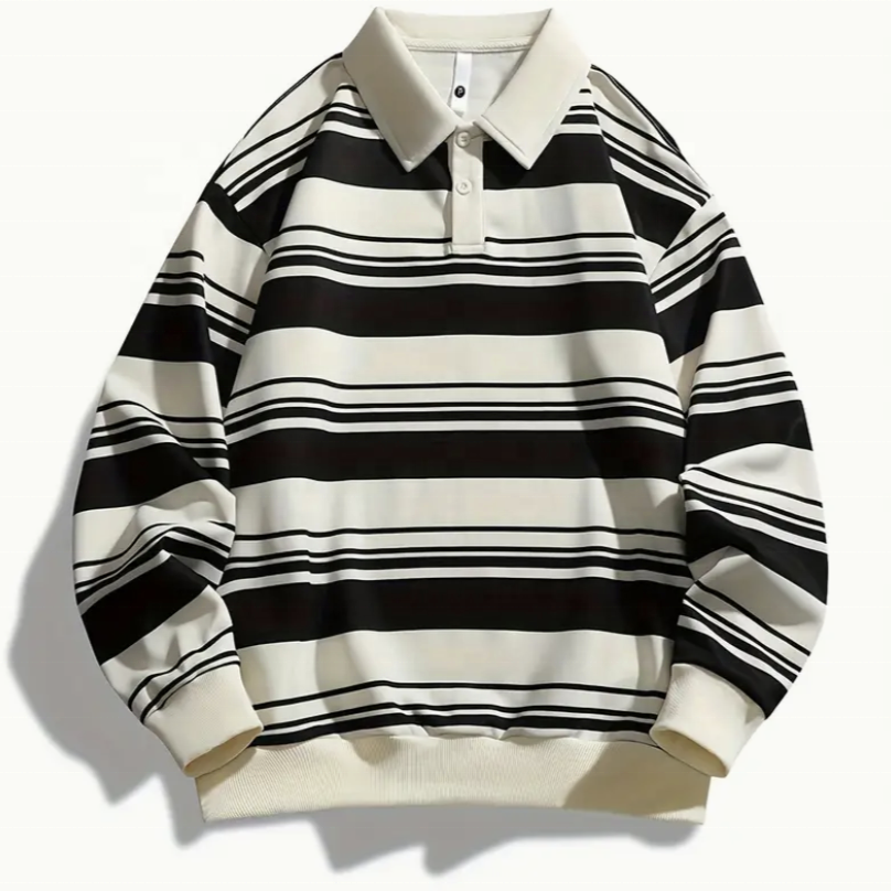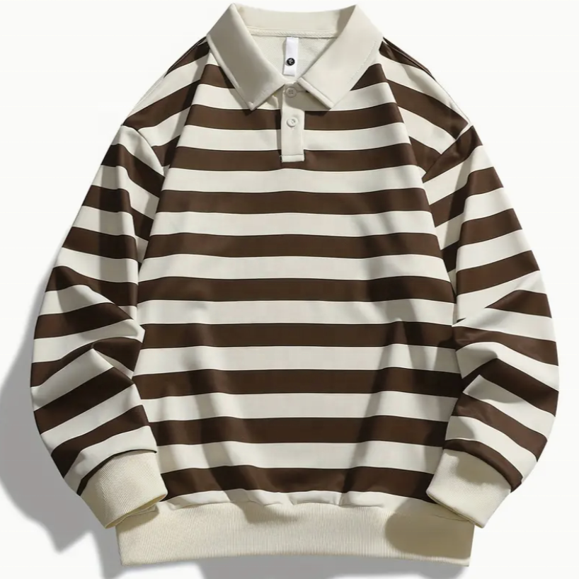 Men's Custom Logo Striped Long Sleeve Polo Shirt Short Casual Full-Sleeve Neck T-Shirt Custom Service Blank Long Polo Shirts