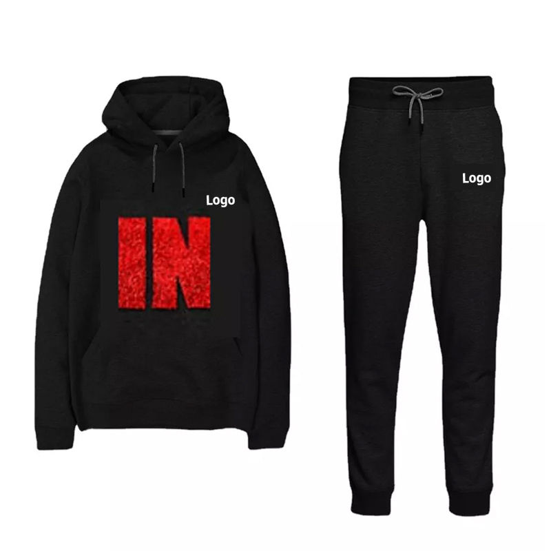 Men's Custom Logo Zip-Up Hoodie and Solid Pattern Sweat Pants Set Printed Jogging Tracksuit for Outdoor Activities Wholesale
