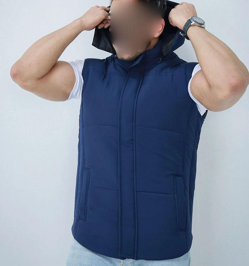 Men's Custom Made Winter Puffer Jacket Stand Collar Hood Front Canvas Fabric Waterproof Polyester Padding Low MOQ Plain Dyed