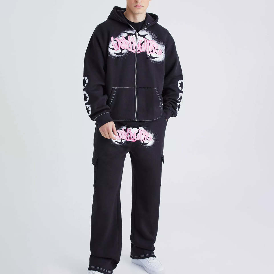 Men's Custom Plus Size Two-Piece Training Sports Hooded Sweatpants Set Breathable Lightweight Fleece Streetwear Winter Logo