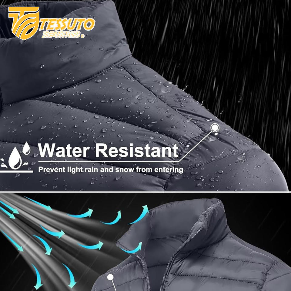 Men's Custom Satin Puffer Jacket Designer Winter Bubble Padded Coat Waterproof with Zipper Closure Short Length Outdoorwear