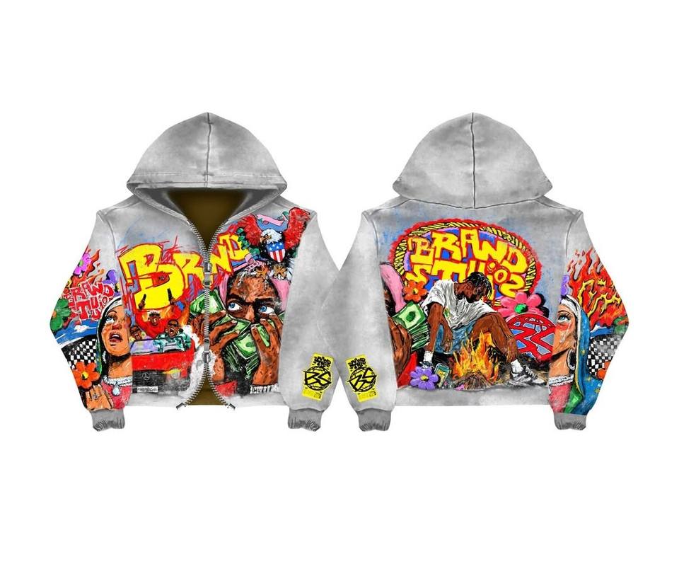 Men's Custom Sports Clothing Set Two-Piece Flared Pants with Hot Diamond Zipper Graphic Hoodie and Sweatshirt Print Design