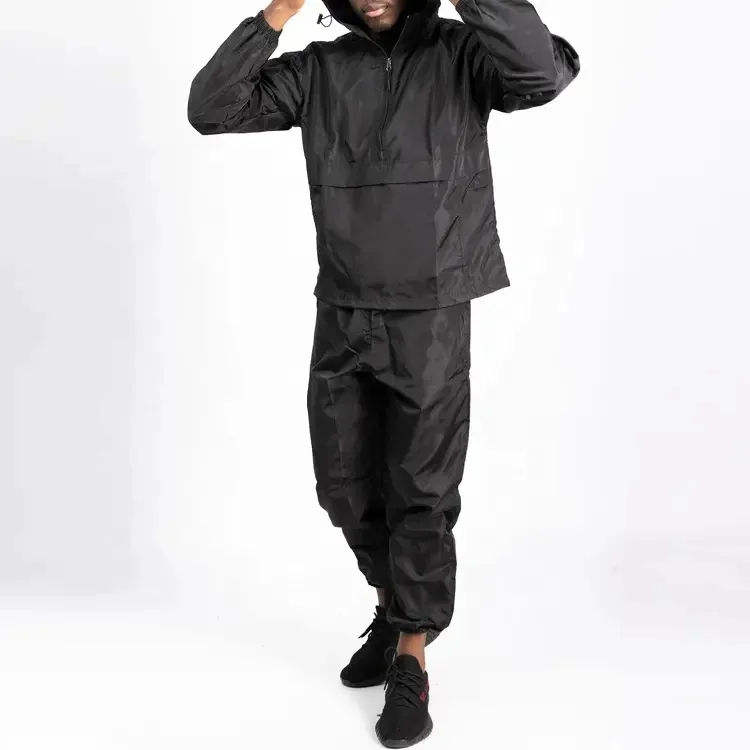 Unisex Custom Two-Piece Winter Sports Sets Half Zip Hooded Windbreaker Sweatsuit Nylon Plus Size Lightweight 2 PCS Tracksuit