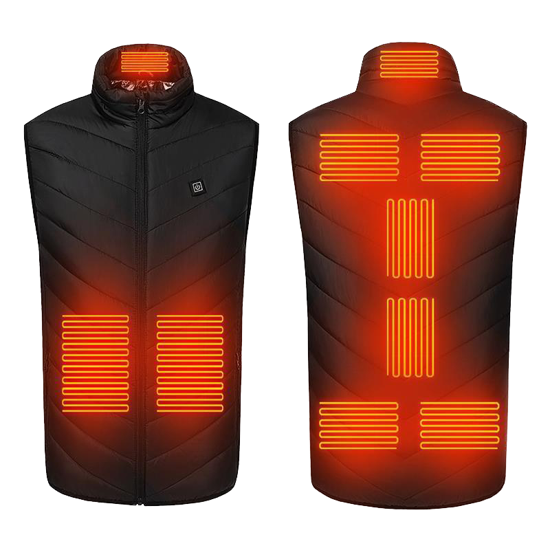 Men's Custom USB Heated Waistcoat Winter Casual Gilet Sleeveless Vests with 9 Hot Zones and Woven Outer Wear Zipper Closure