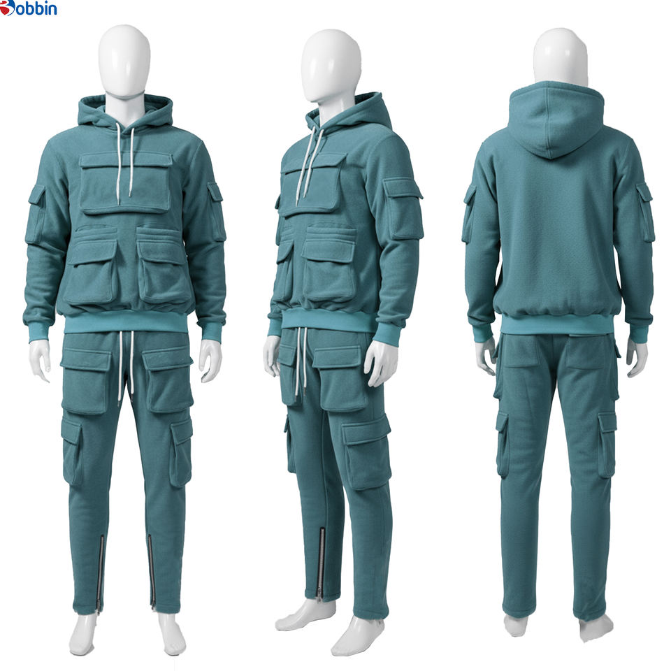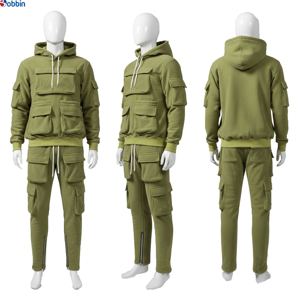 Men's Customized Logo Casual Cargo Tracksuit Winter XXL Hooded 2pcs Jogger Suit with New Multipacket Design