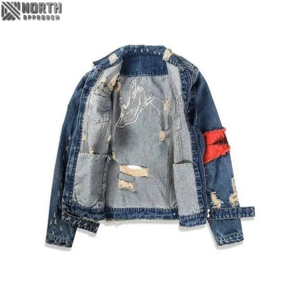 Men's Denim Jacket with Leather Patchwork Multi-Pockets Trucker Biker Jeans for Winter Plain Techniques Jean Jacket for Men