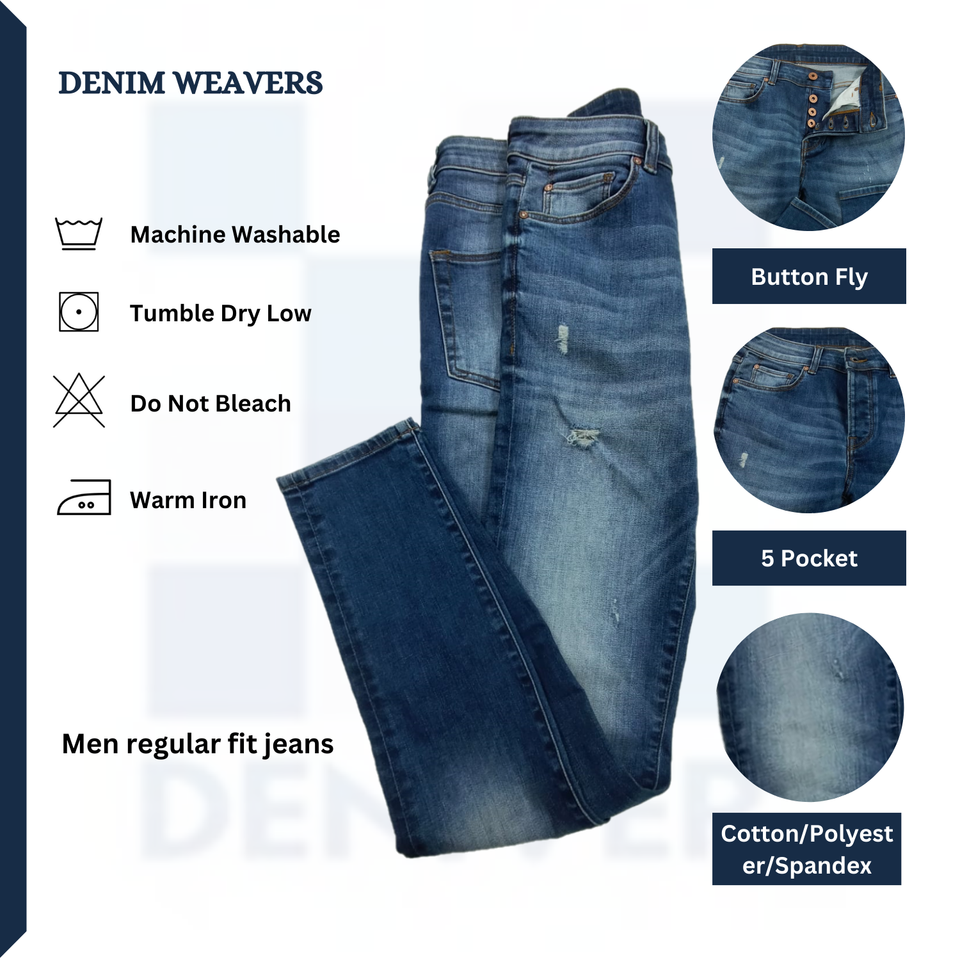 Men's Denim Western Style Pants Stretch Boys Blue Washed Ripped Jean High Waist Regular Fit Baggy Selvedge Custom Men's Jeans