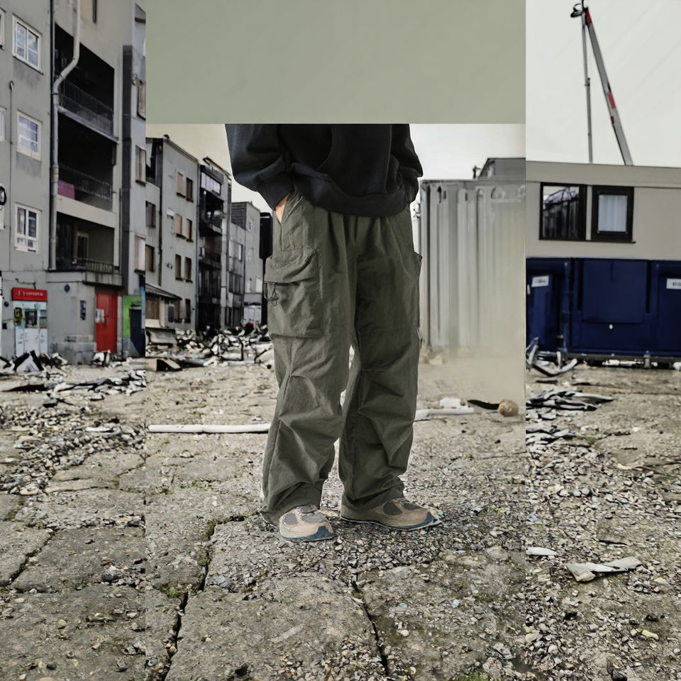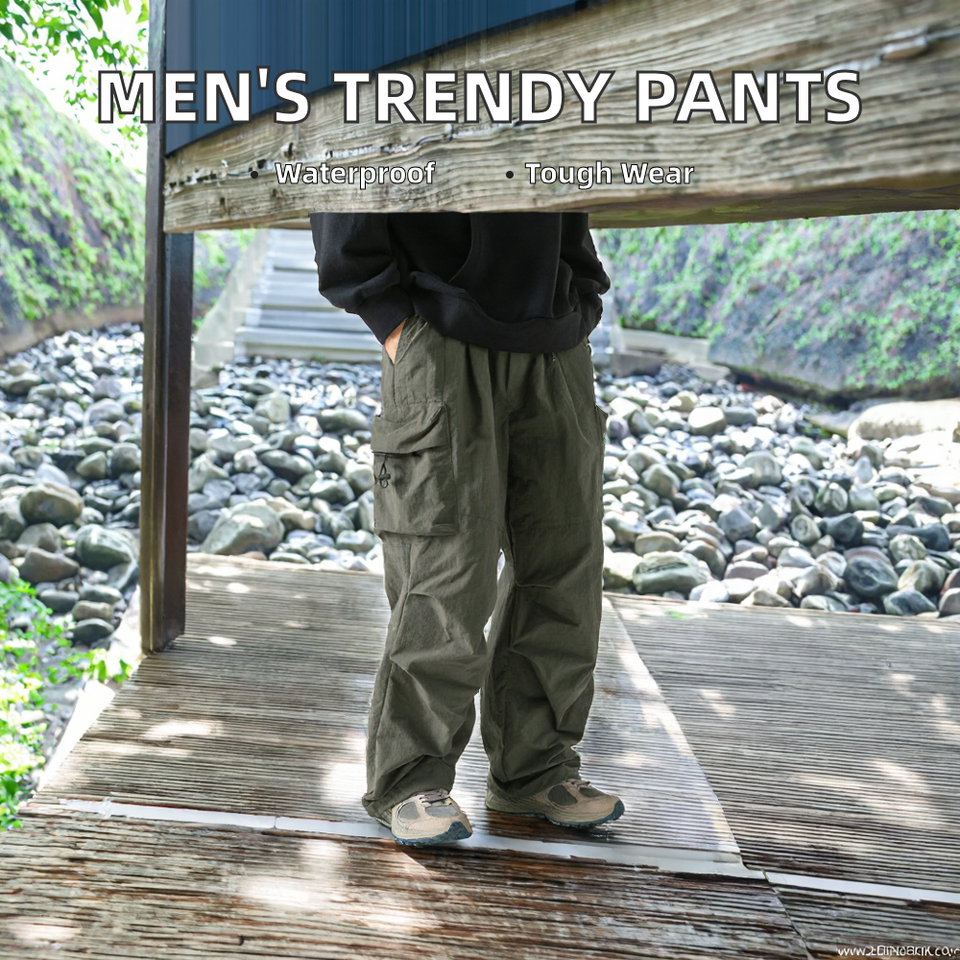 Men's Double-Knee Parachute Pants Water-Repellent Spring Trendy Brand Casual Mid-Waist Three-Dimensional Worsted Fabric Trousers
