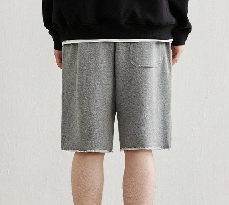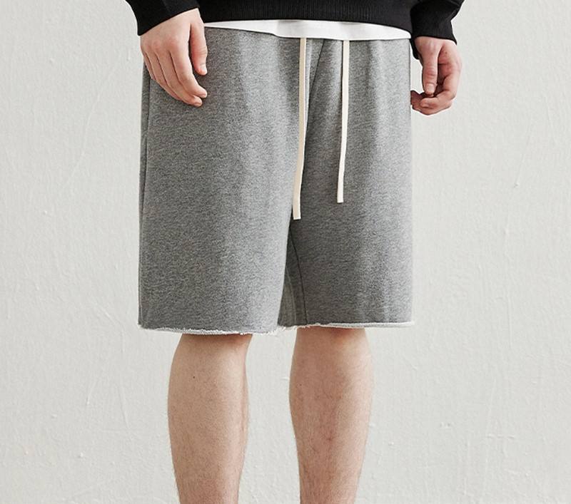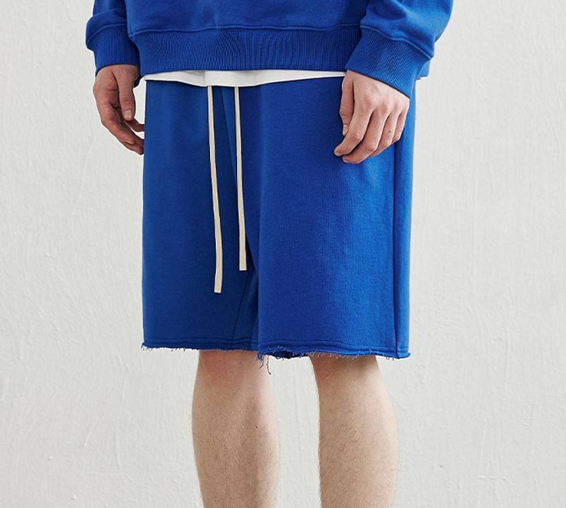 Men's Drawstring Pockets Sweat Shorts Custom Design Men Streetwear Raw Cut Hem Cotton Vintage Designs essential shorts for men