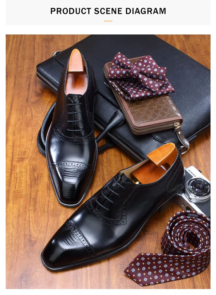 Men's Durable Genuine Cowhide Business Shoes - Classic Formal Oxford Dress Shoes, Soft Insole & Slip-Resistant for Daily Wear