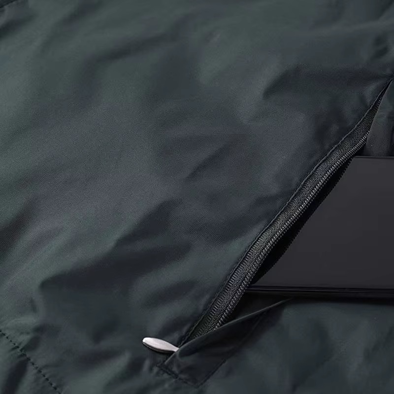 Men's Durable Wax-Coated Slim-Fit Waterproof Outdoor Jacket Breathable Hiking Coat Stand Collar Two-Way Zipper Windproof Design
