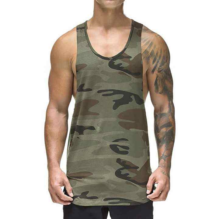 Men's Eco-friendly Cotton And Spandex Gym Tanktop Ribbed Singlets With Front Logo For Bodybuilding Vest Tank Top