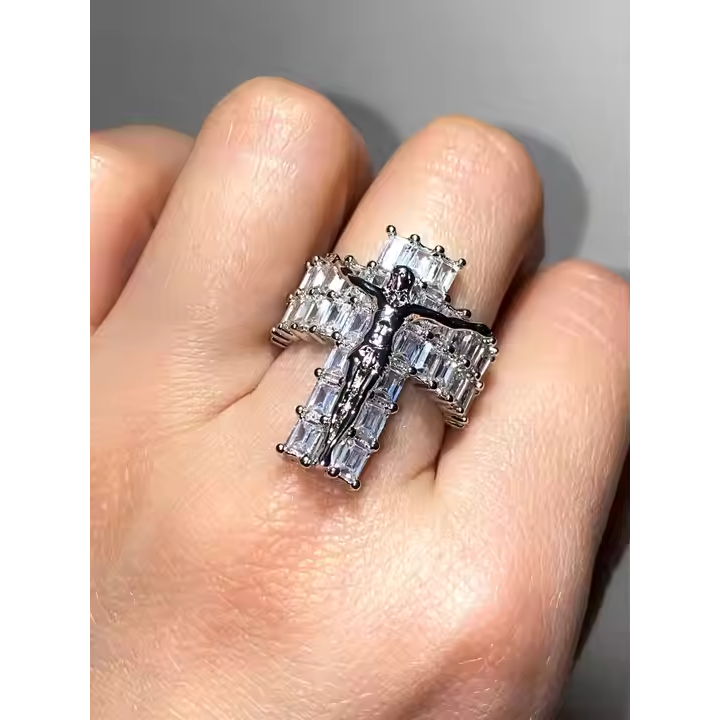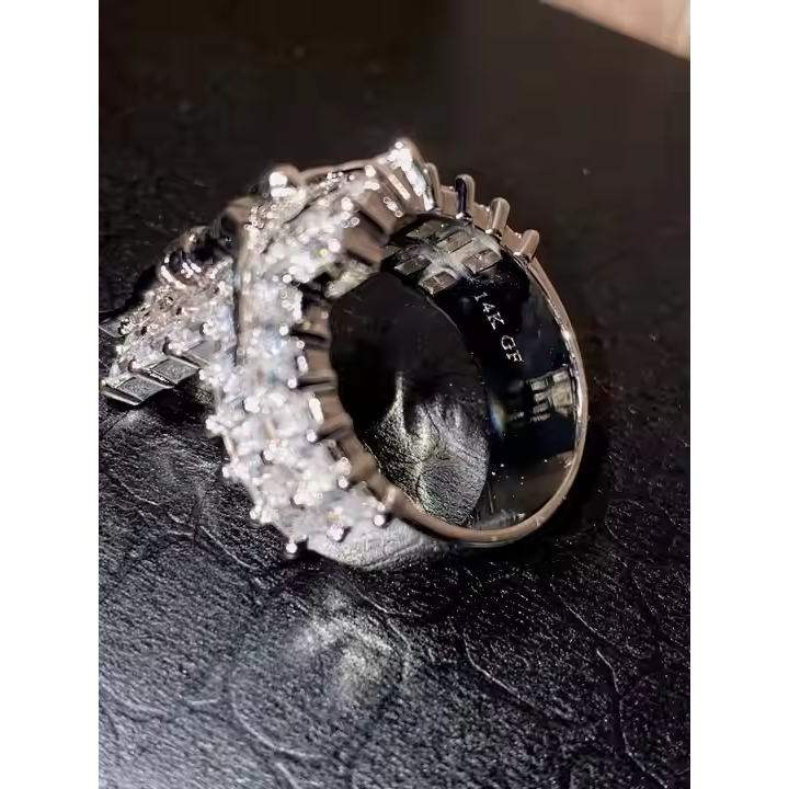 Men's Emerald Moissanite Diamond Hip Hop Ring for Men Bling Rings Unique Stylish Jewelry