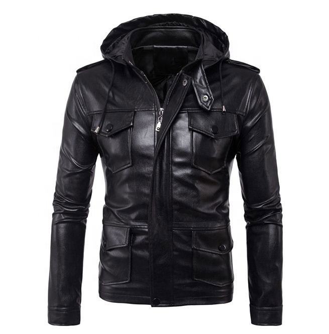 Men's England Style Leather Jacket with Stand Collar and Hood Customized Casual Cow Skin Leather for Winter Season New Design
