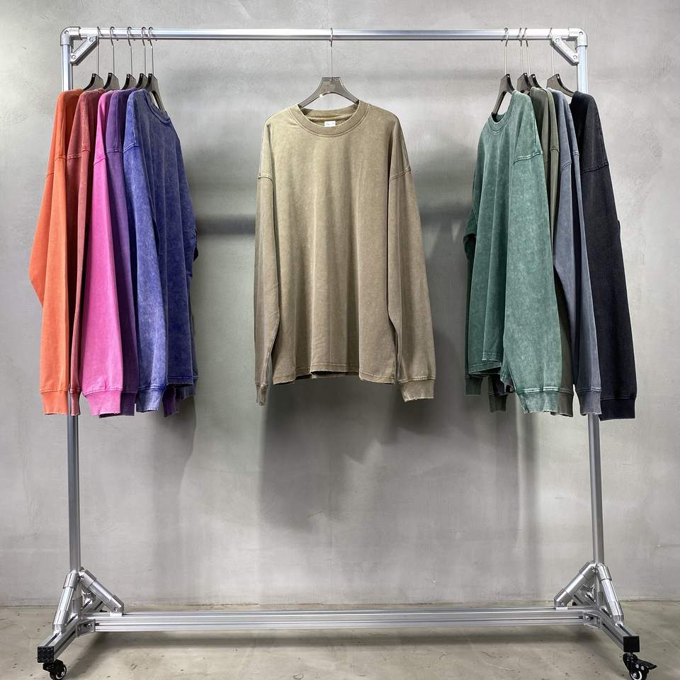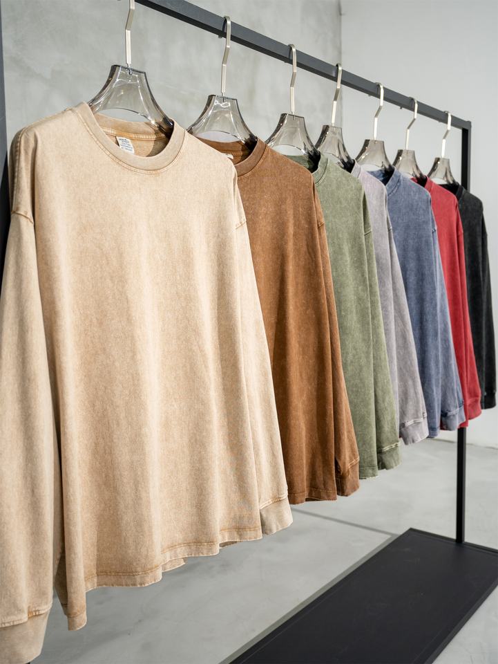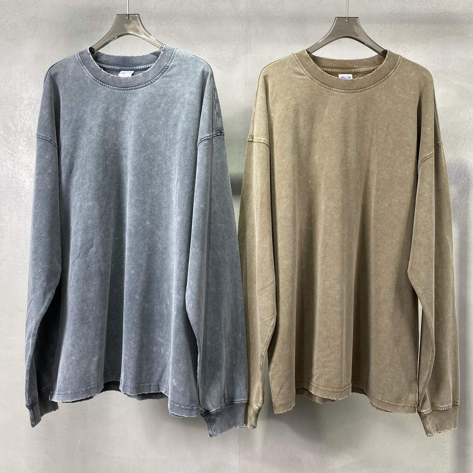 Men's Fall/Winter Retro Washed Long Sleeve T-Shirt Hooded Pullover Style Short Batik Knitted Fashion Brand American Style