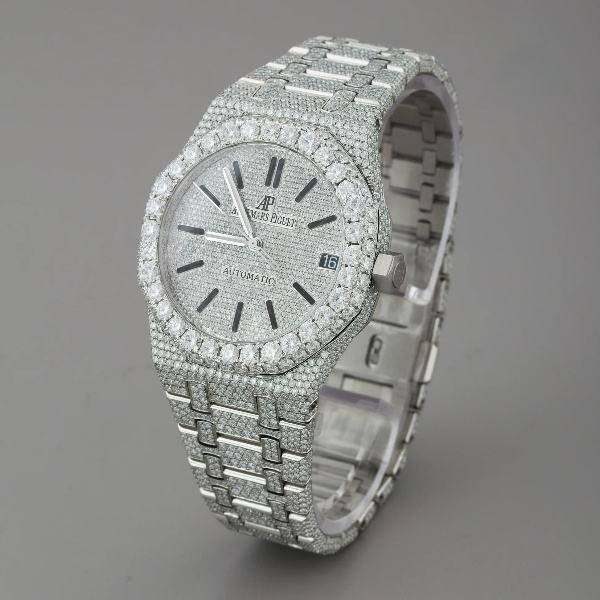 Men's Fashion Hip Hop Watch Fully Iced Out 925 Sterling Silver Plated VVS Moissanite Platinum Band ETA Movement Fashion Jewelry