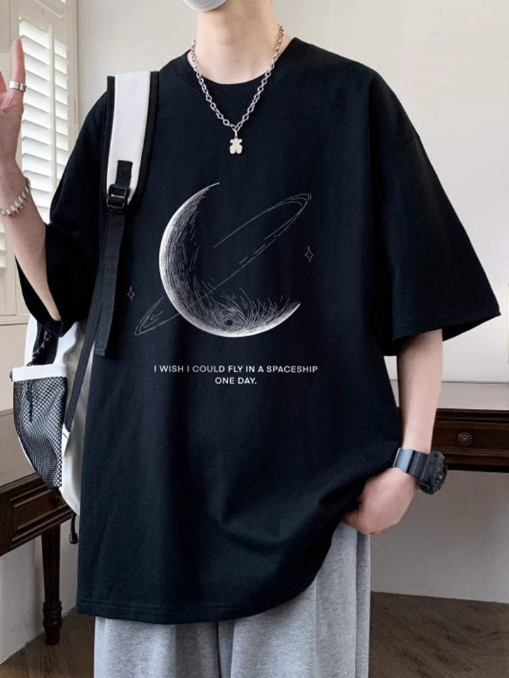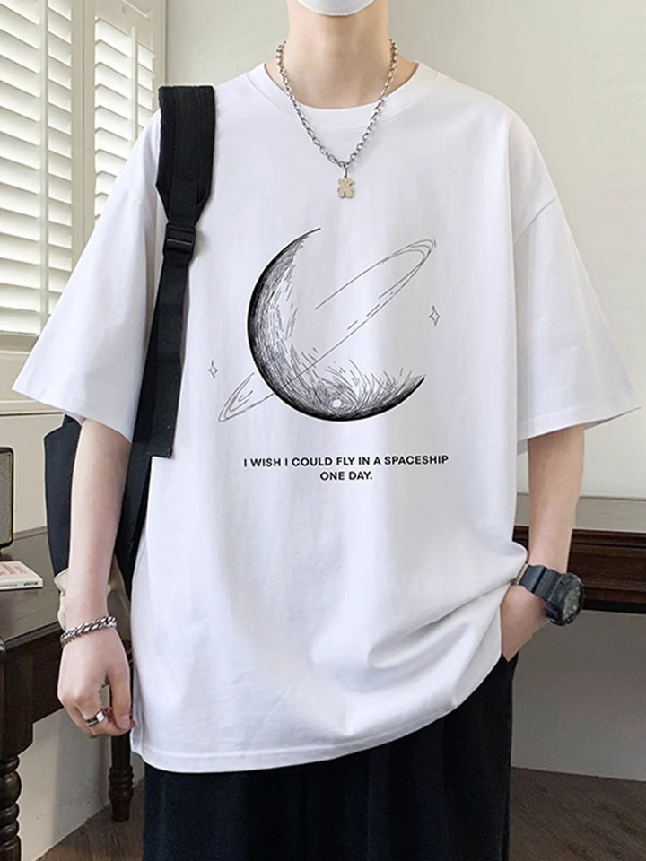 Men's Fashion Loose Fit T-Shirt Crew Neck Athletic Workout Tshirts Heavyweight Short Sleeve Premium Cotton Basic Tee