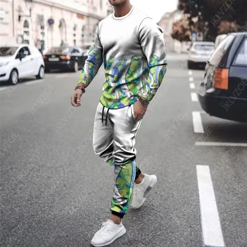 Men's Fashion Tracksuit 3D Printed Casual Outfits Set 2 Piece Long Sleeve T-Shirt+Trousers Suit Oversized Male Outdoor Clothing