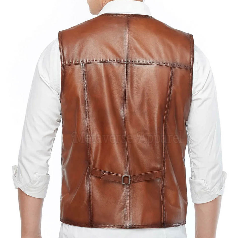Men's Fashion Vest Breathable High Quality Leather Zipper Closure V-neck Collar High Street Style Outer Wear for Winter on Sale