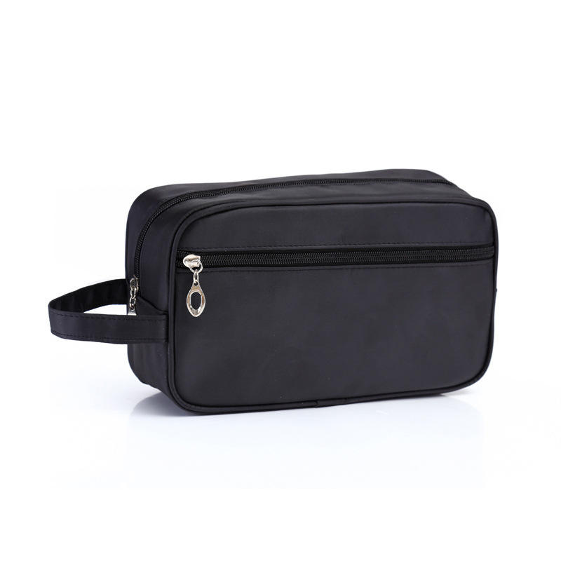 Men's Fashionable Black Polyester Cosmetic Bag Large Capacity Zipper Makeup Pouch for Daily Storage