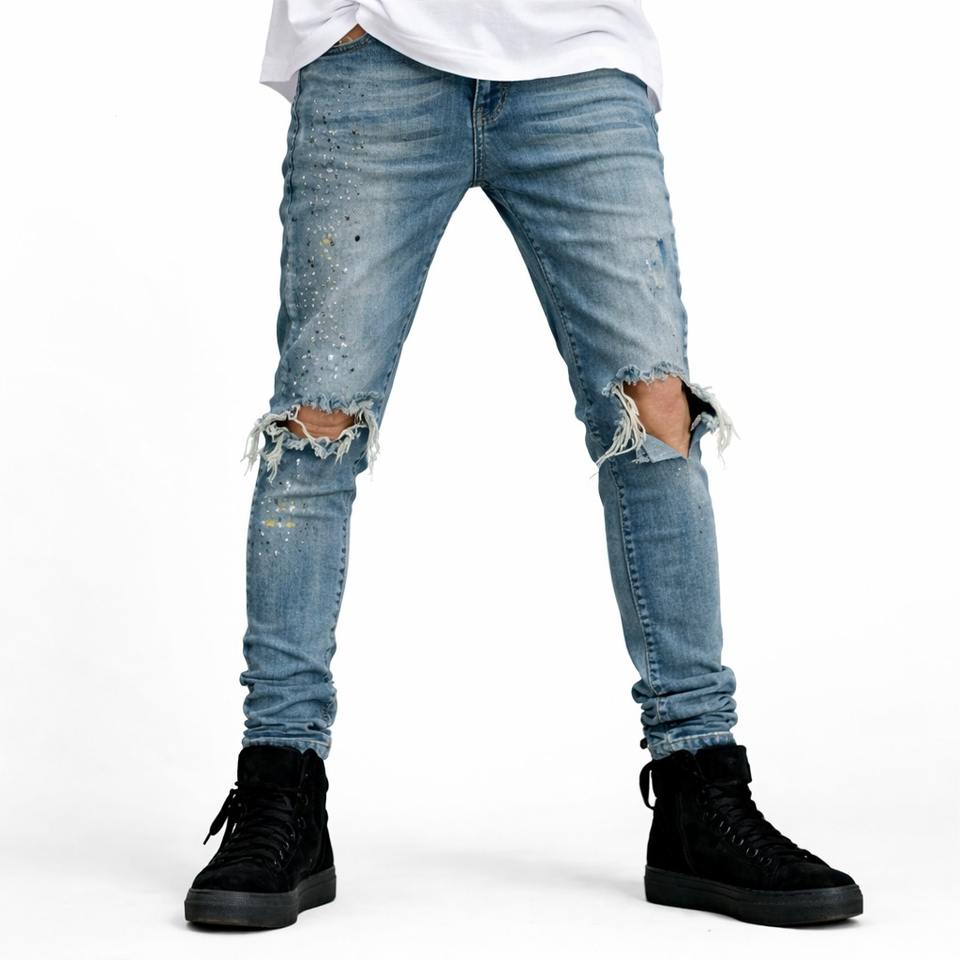 Men's Fashionable Breathable Streetwear Party Denim Jeans Torn Mid Waist Straight-leg Casual Wear Bulk Pack