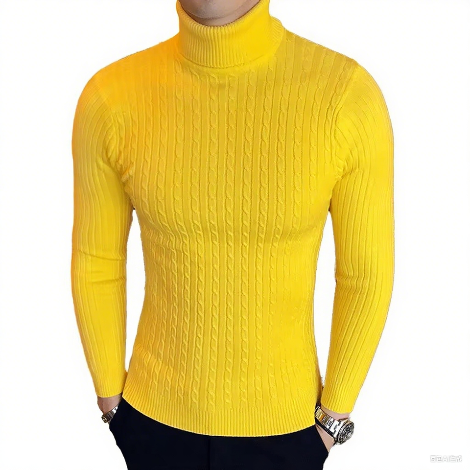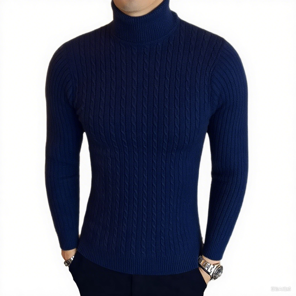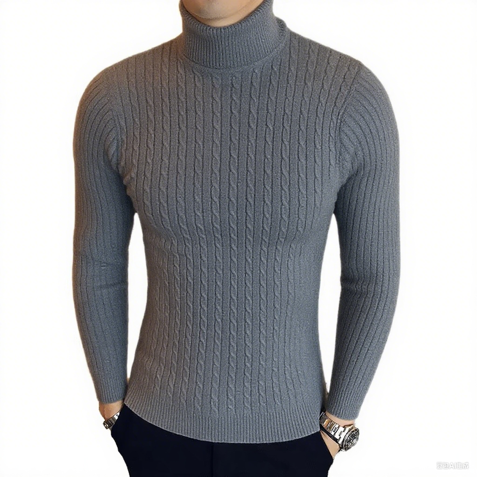Men's Fashionable High Neck Pullover Long Sleeve Winter Sweater Turtle Neck Pattern Breathable Knitted for Autumn Season Warming