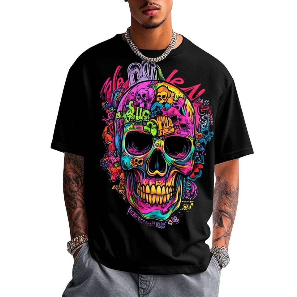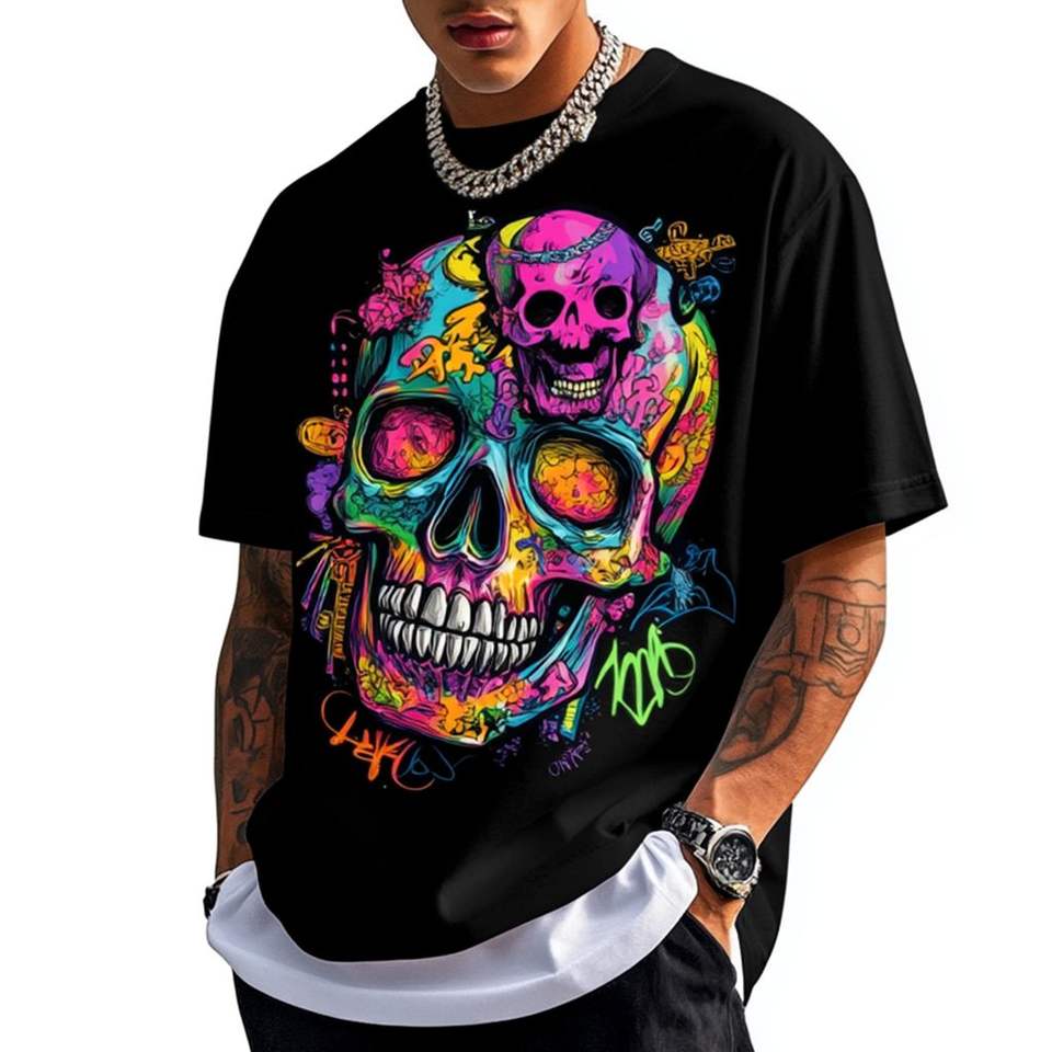 Men's Fashionable Oversized Soft T-Shirt Breathable Cotton Vibrant Skull Graphic Print Street Casual 300 Grams 100% Cotton