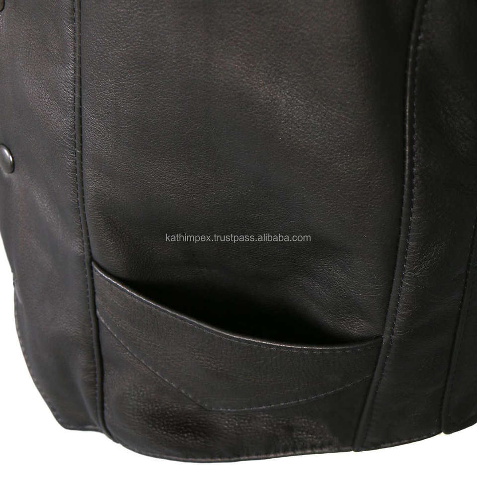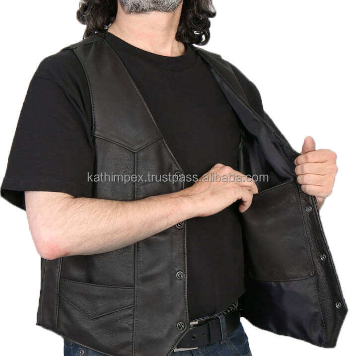 Men's Fashionable Snap Button Style Closure Black Breathable Leather Vest with OEM Service for Bulk Wholesale Order