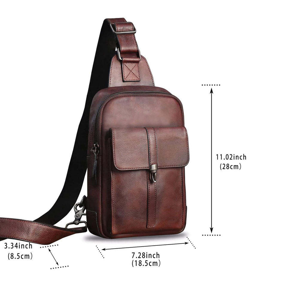 Men's Fashionable Waterproof Genuine Leather Crossbody Sling Bag with Zipper Closure Portable Chest Bag