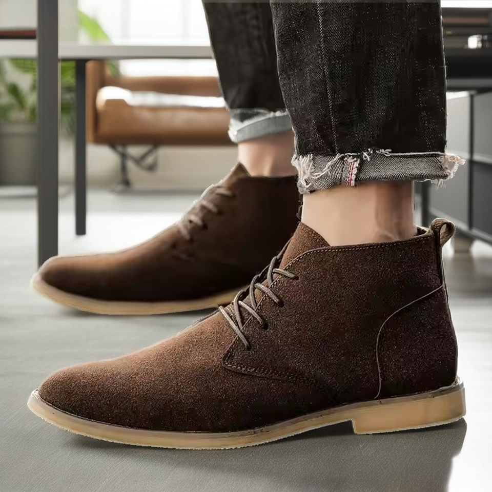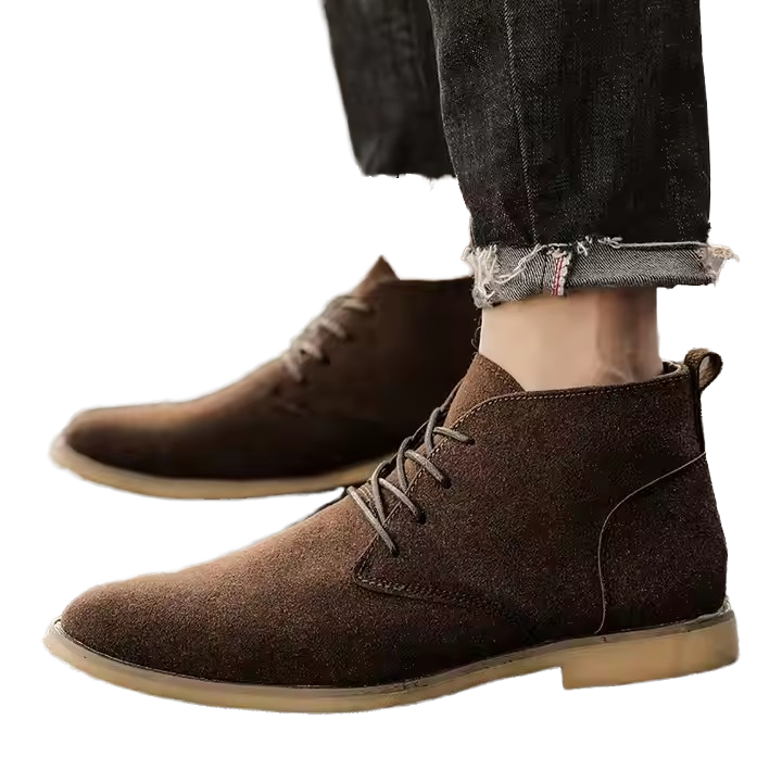Men's Faux Suede Leather Dress Shoes Lace-Up Pointed Toe Solid Height Increasing Flat Design Size 39-46 for Spring Summer