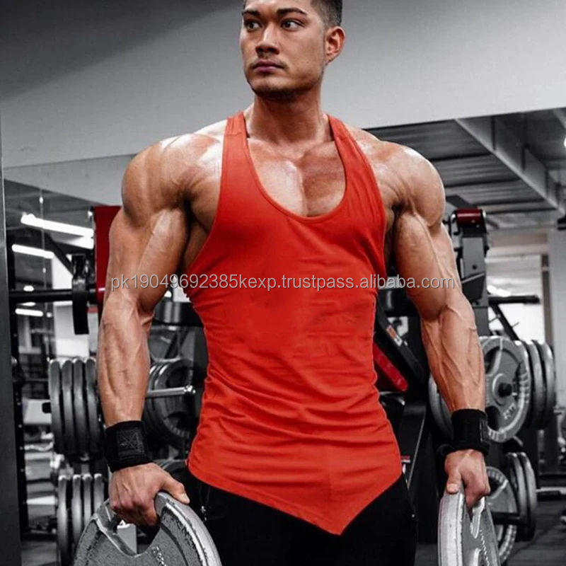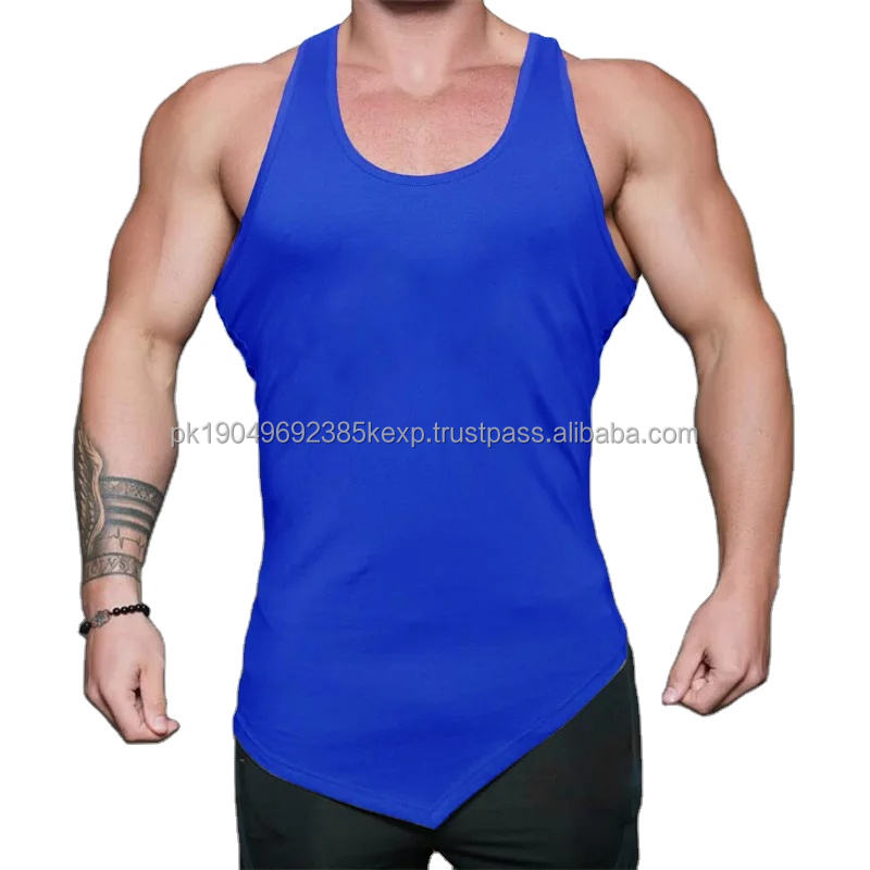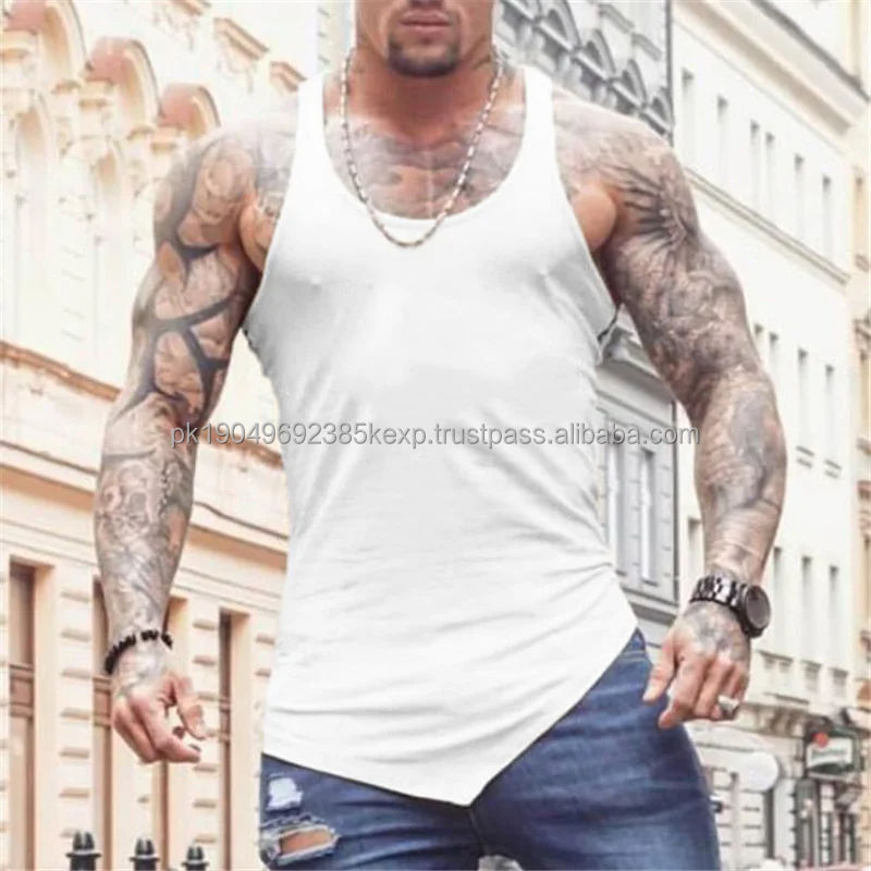 Men's Fitness Sport Gym Bodybuilding Tank Tops Solid Color Cotton Knitted Training T-Shirt Irregular Hem Vests Breathable Hip
