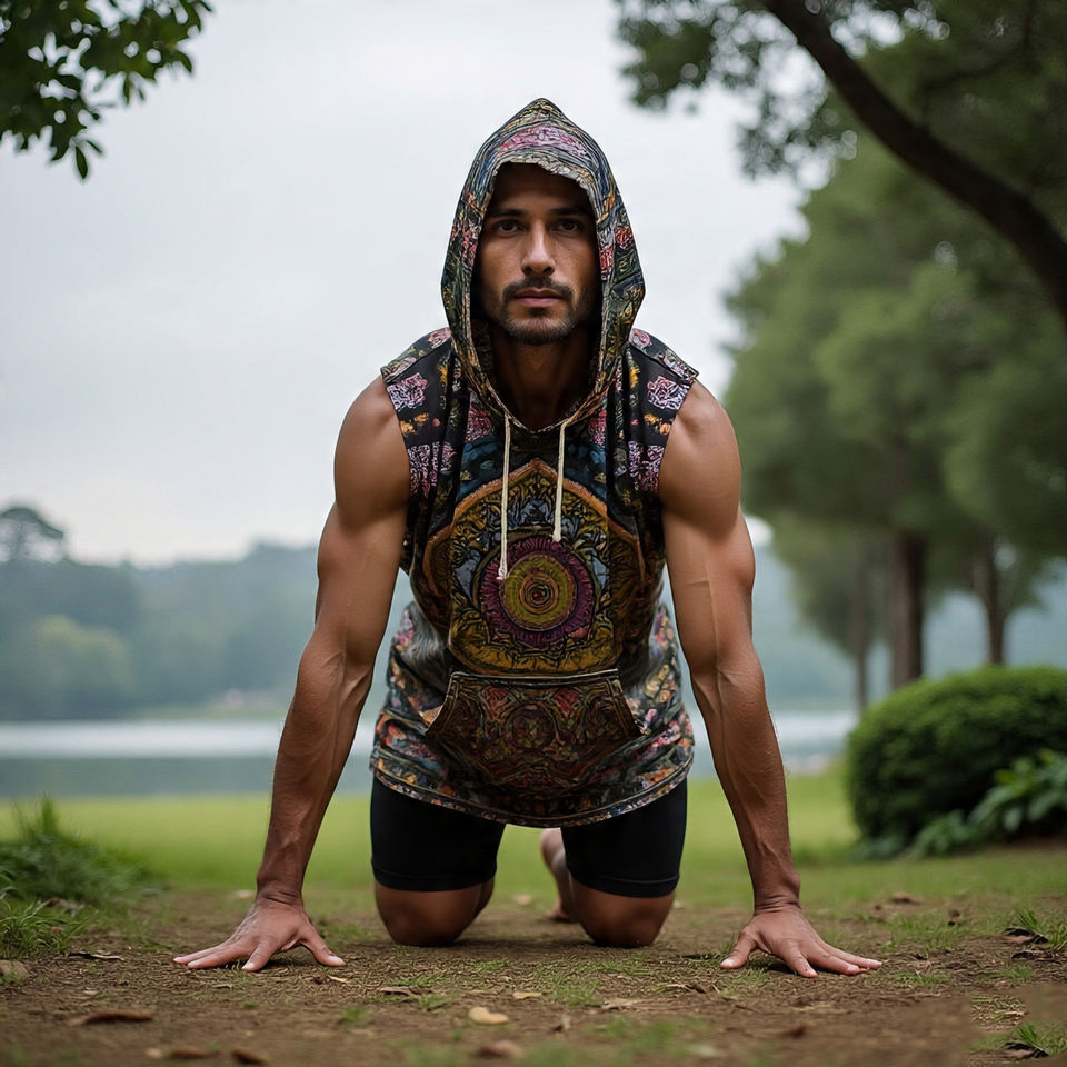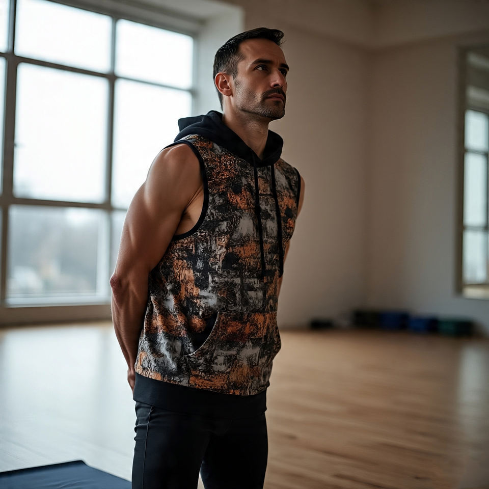 Men's Fitness Wear Printed Hoodie Bodybuilding Gym Wear Sleeveless Sublimation Top Workout Jogging Hood Men Printed Hoodie