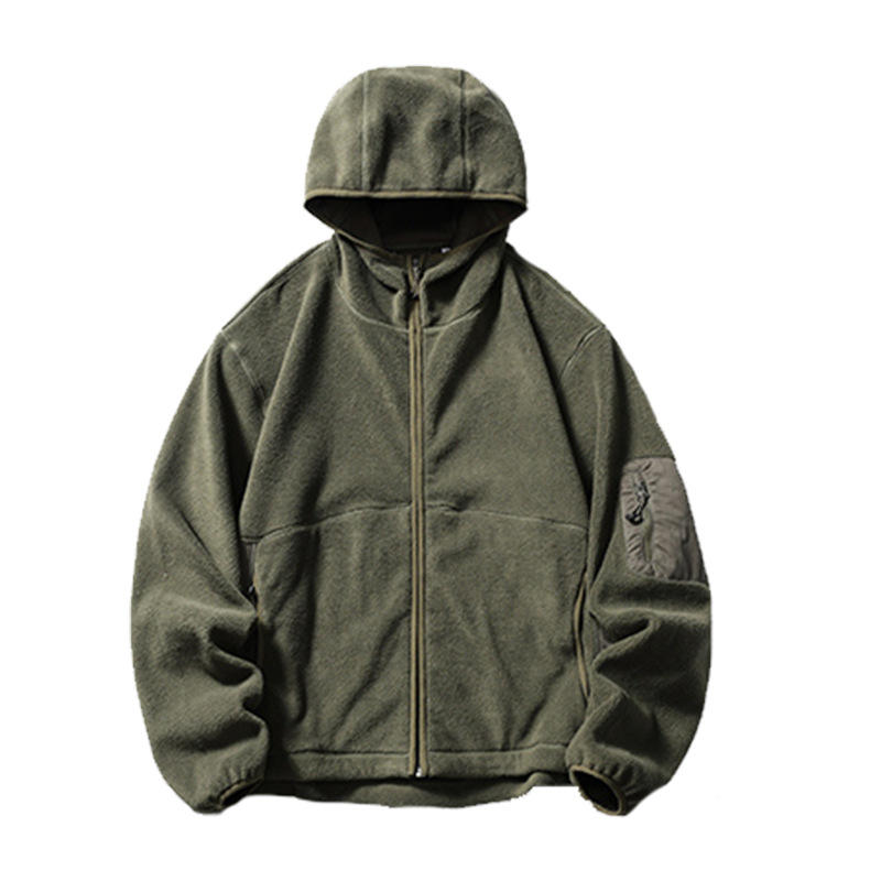 Men's Fleece Hooded Jacket - Winter Outdoor Solid Color Loose High Neck Sherpa Coat