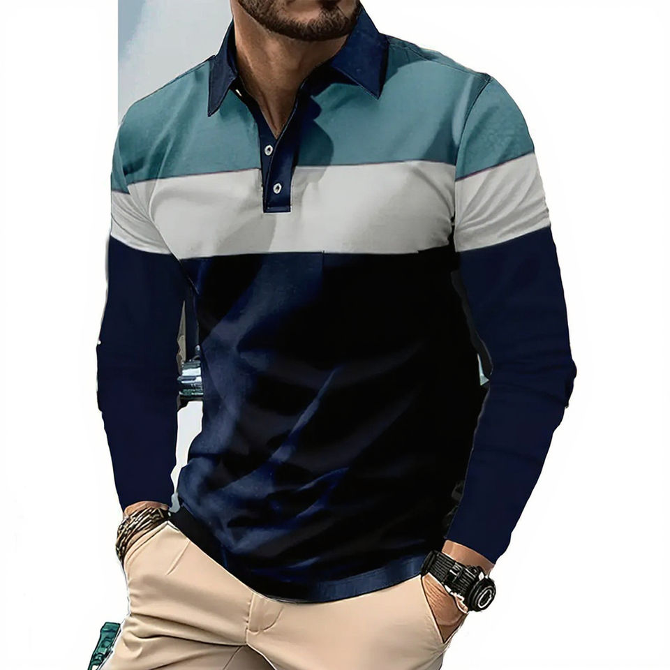 Men's Formal Long Sleeve Henley Golf Shirt Lapel Collar Button Detail 3D Pattern Color Block Design Knitted Breathable