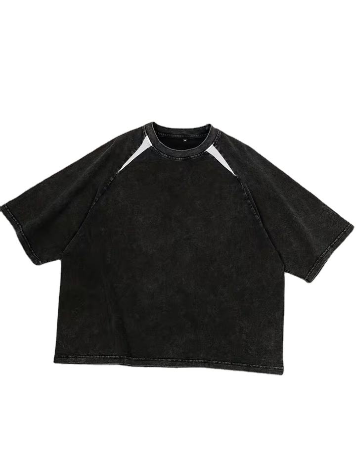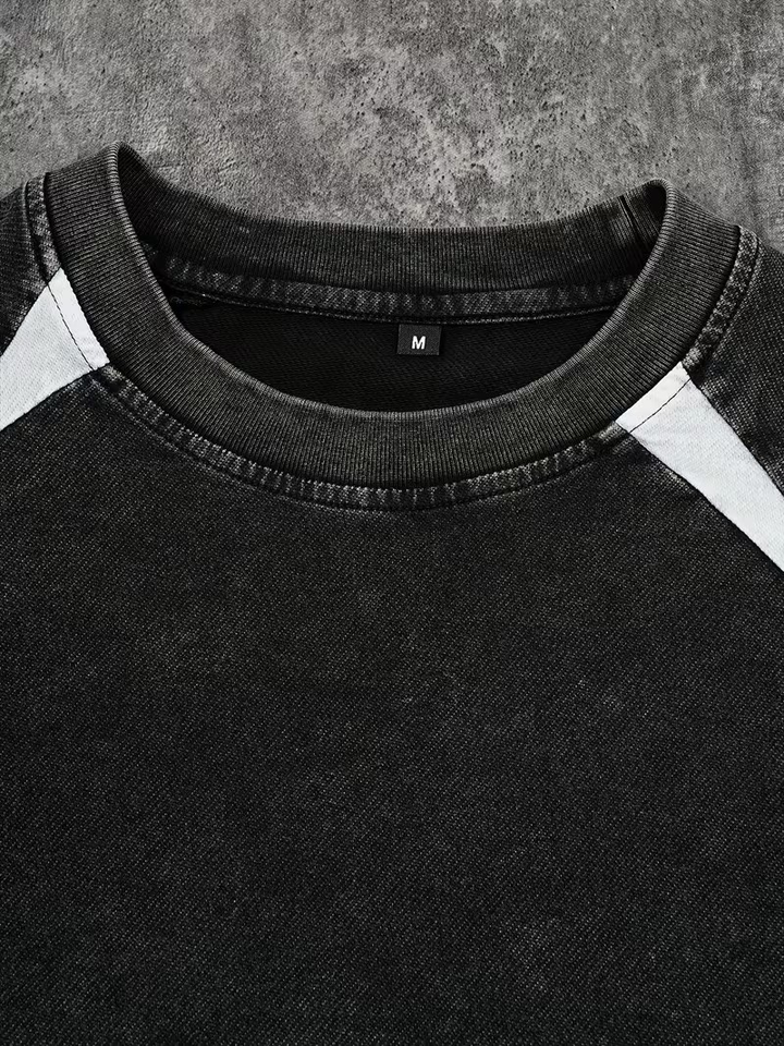 Men's Formal Oversized Short Sleeve T-Shirt Heavyweight 240Gsm Contrast Color Block Design Loose Fit Comfortable Breathable