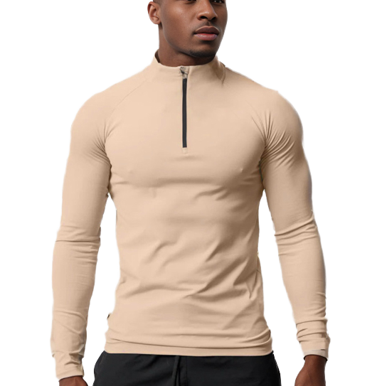 Men's Four-Way Stretch Fleece Compression Top High Neck Half Zip Compression Shirt