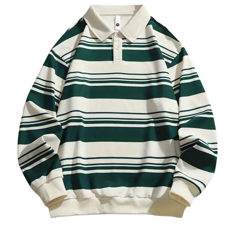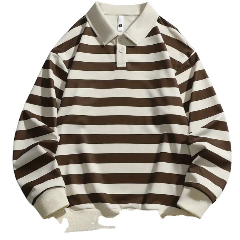 Men's Full Sleeve Polo Shirt Striped Custom Service Blank Polo Neck Custom Logo Striped Long Sleeve Polo Shirts for Men 2026