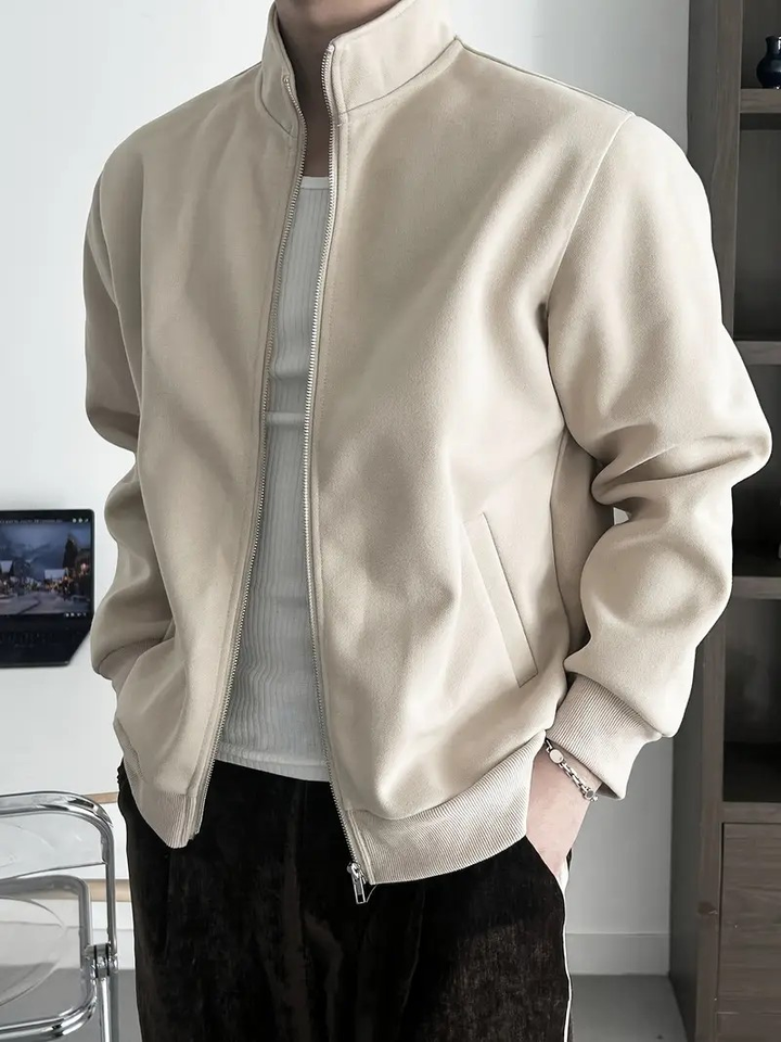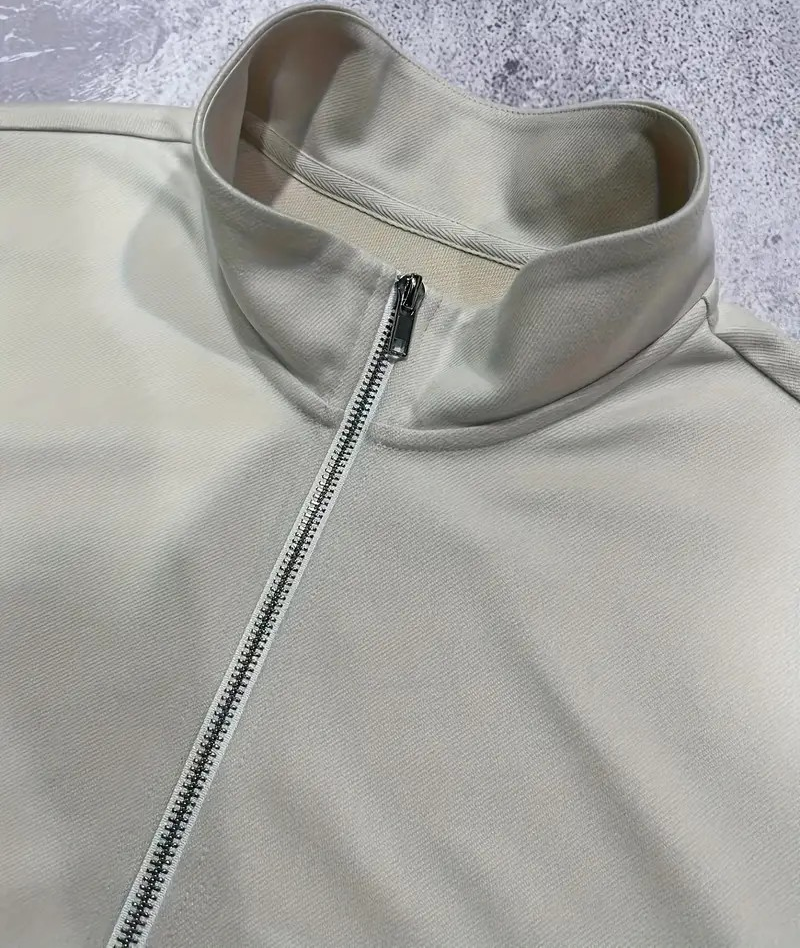 Men's Full-Zip Hooded Jacket Neutral-Tan Outerwear Zippered Pockets Lightweight Windproof Coat Hiking Casual Front Logo