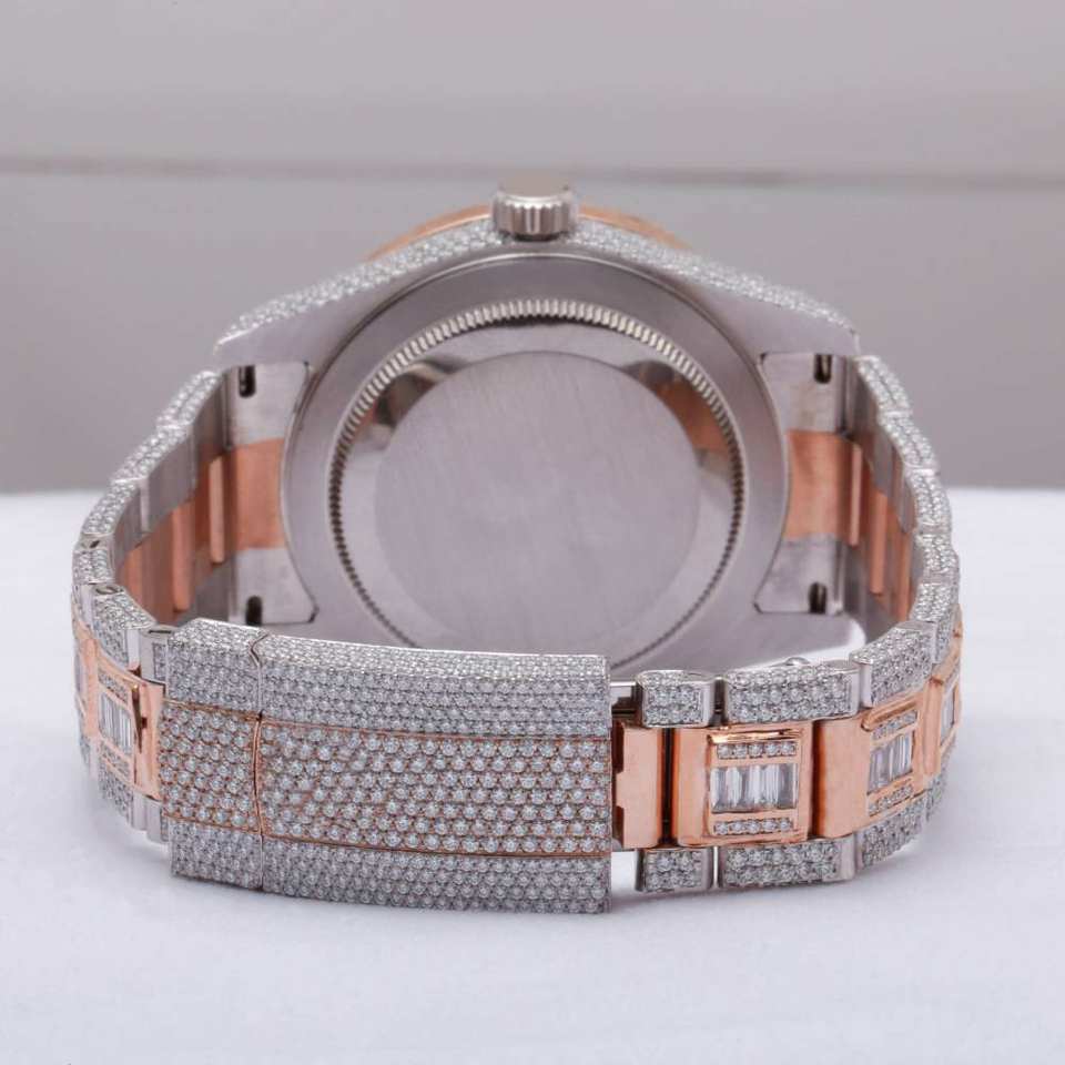 Men's Fully Iced Out Wrist Watch with Round Baguette VVS-Moissanite Diamonds 41mm Dial Diameter 20mm Band Width Quartz Movement