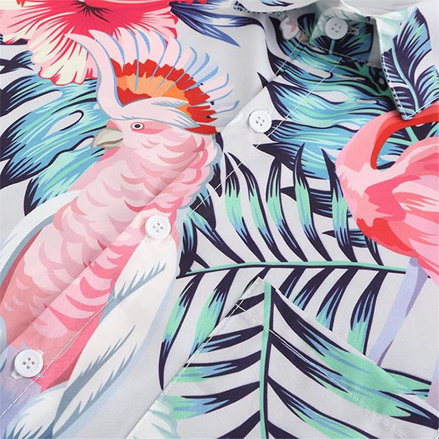 Men's Funky Hawaiian Stand Collar Shirt Custom Logo Print Breathable Tropical Vacation Palm Beach Shirts ODM Supply