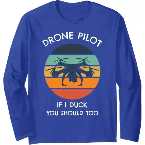Men's Funny Drone Pilot Long Sleeve T-Shirt "If I Duck You Should Too" Pilot Joke