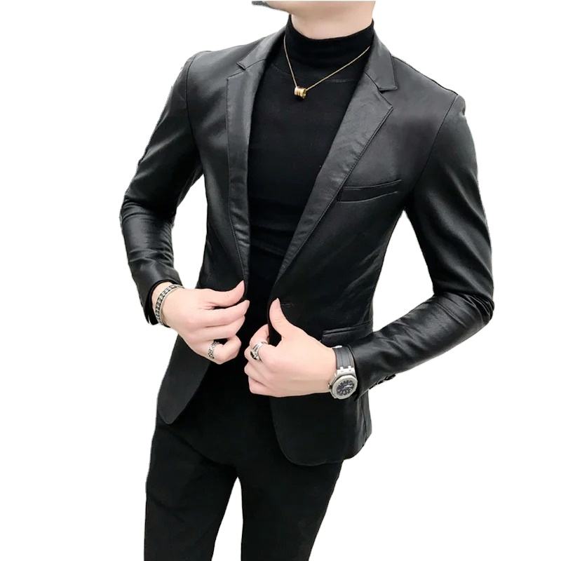Men's Genuine Leather Canvas Jacket Business Fashion Solid Color High Quality Casual Slim High Street Style Black