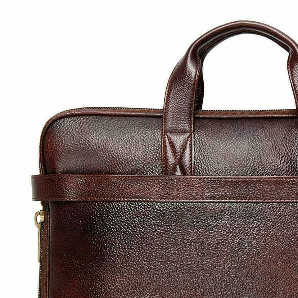 Men's Genuine Leather Handbags Casual Laptop Bag Best Quality Waterproof Leather Office Bags in Solid Color