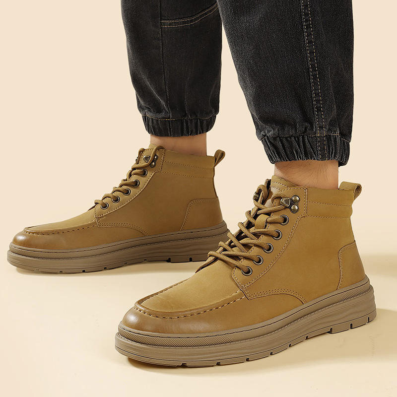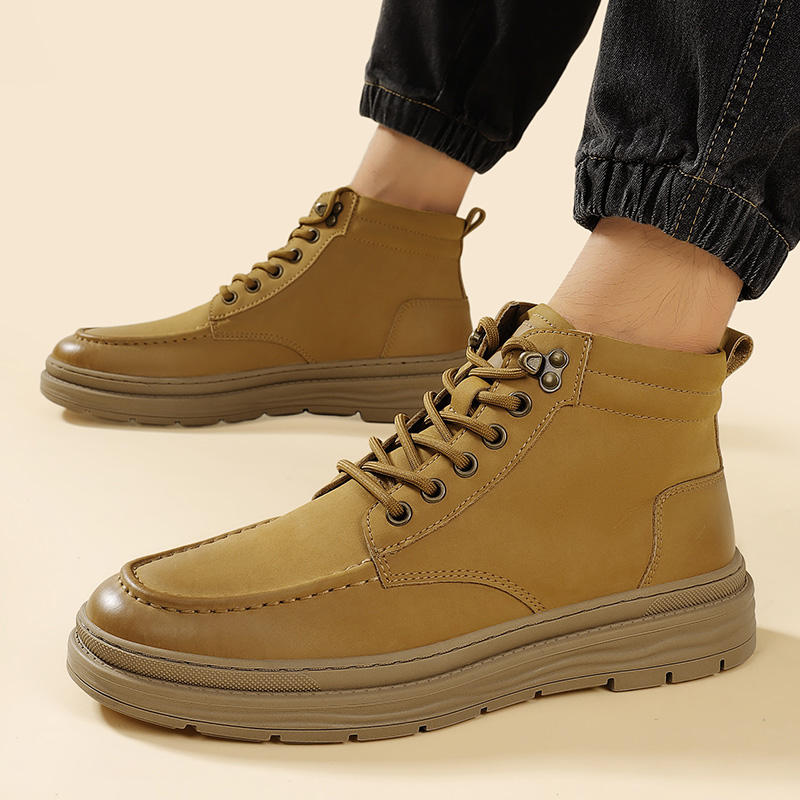 Men's Genuine Leather Lace-Up Winter Boots Warm Short Plateau Boots Breathable Anti-Slip Fashionable Discounted Price High