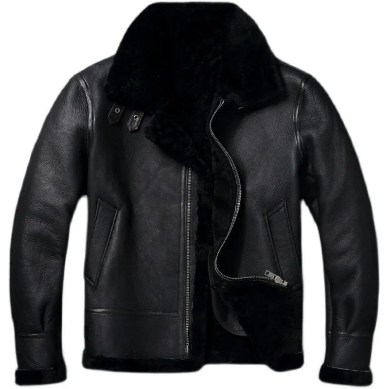 Men's Genuine Leather Sheepskin Shearling Winter Coat Canvas Fabric Thick Warm Waterproof Breathable