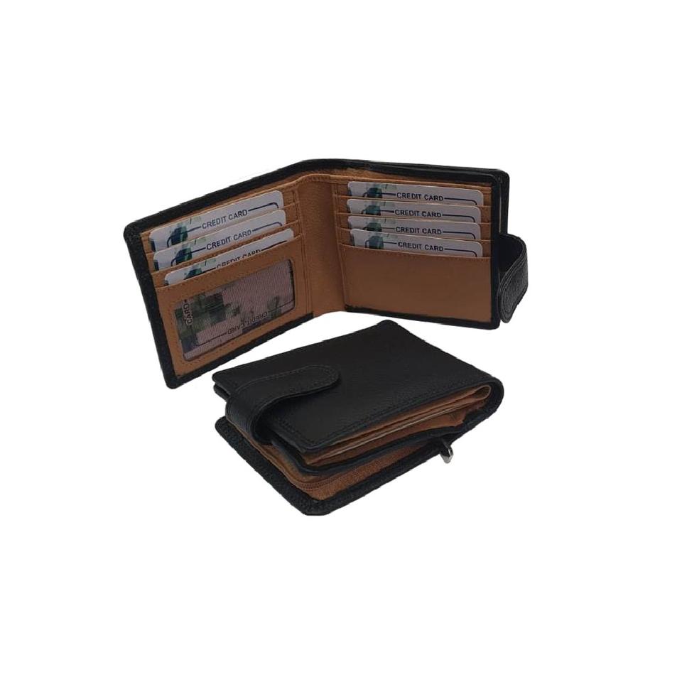Men's Genuine Leather Short RFID Blocking Wallet Coin Pocket Billfold Card Holder in Black