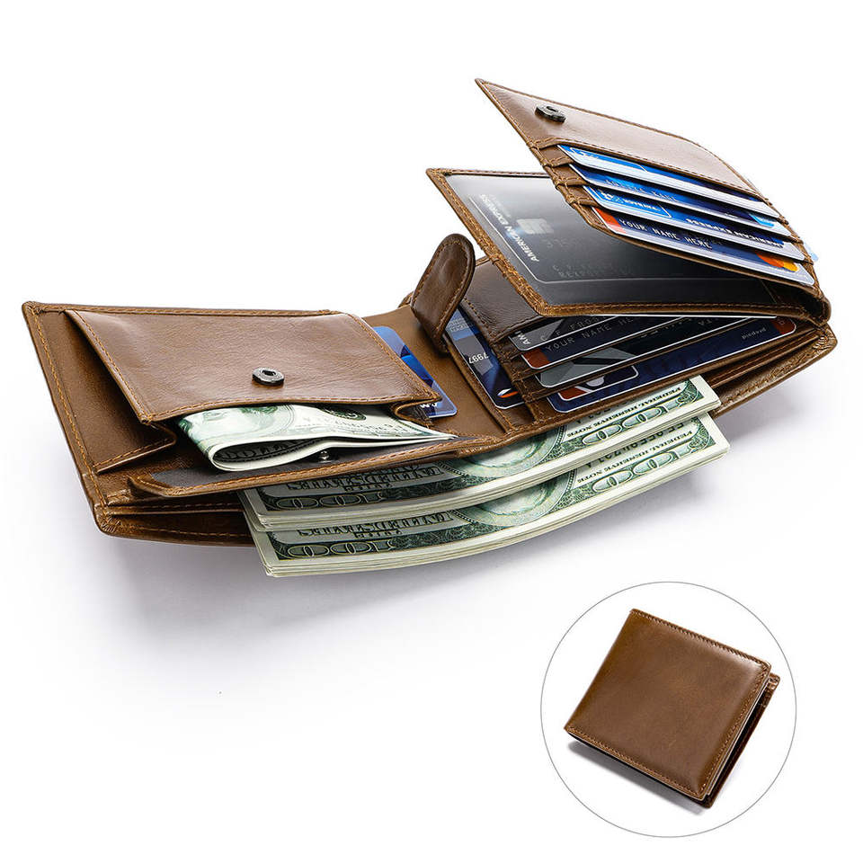 Men's Genuine Leather Vintage Style Wallet Cartera Para Hombre with RFID Anti-theft Card Holder and Coin Purse