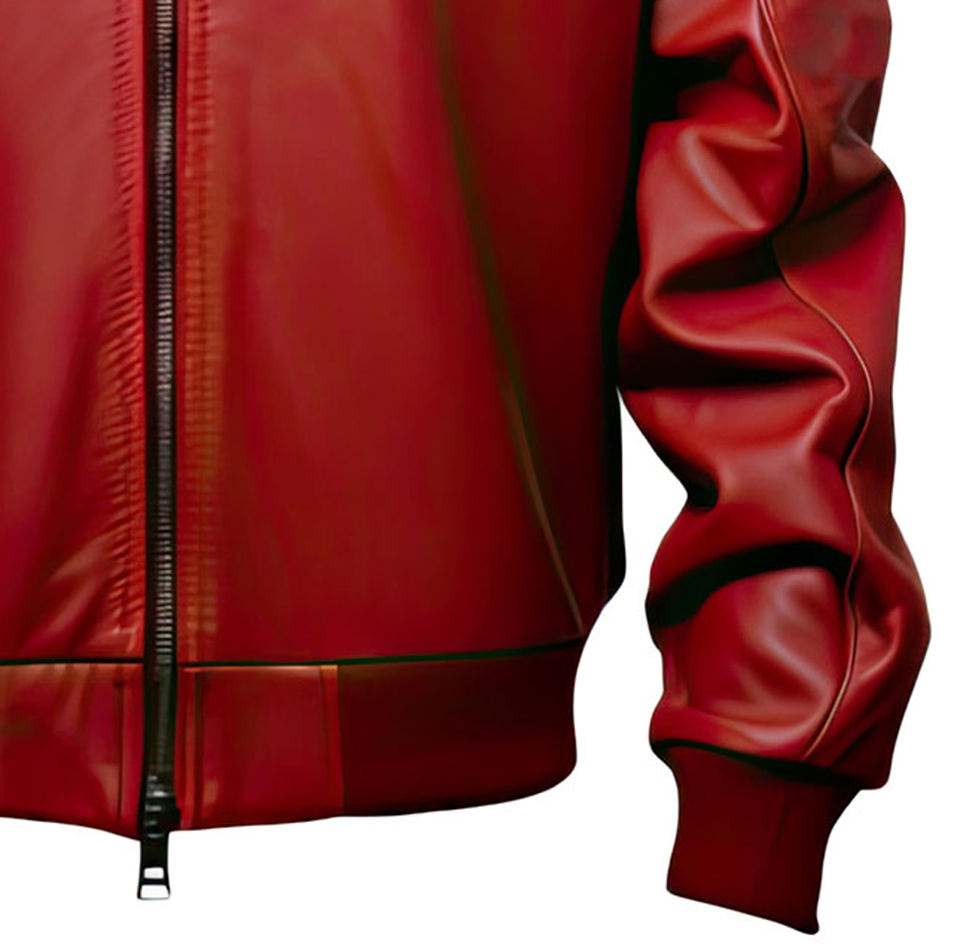 Men's Genuine Sheepskin Leather Hooded Jacket Red Zip-Up Windproof Waterproof High Street Style Customizable High Quality